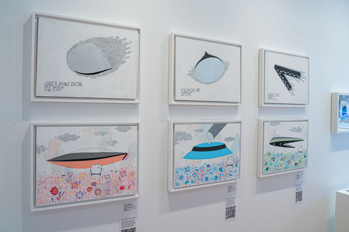 This is a TWO PAINTING diptych from the latest 20 piece show titled Dim Stars: Alien Transport first exhibited in 2024 at the 13Forest Gallery, Boston.