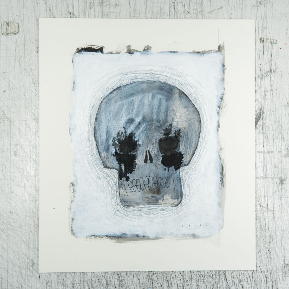 Skulls of Ultimate Death was originally created in a sketchbook which then extended to a series of paintings. Eventually, enough paintings were created and I decided to make a zine. The zine has since fully sold out. The sketchbook drawings were a way to document the passing of family and friends which happened within a short period of time.