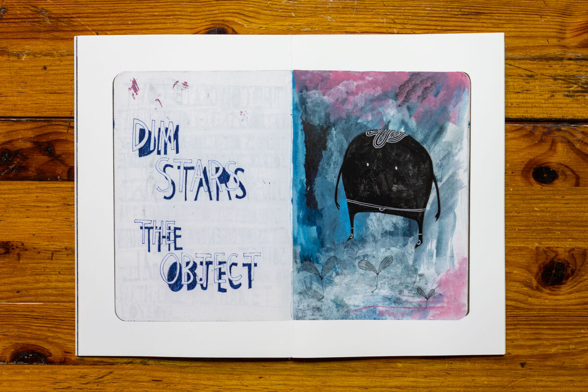 The Dim Stars: The Object sketchbook was created for the Brooklyn Art Library Sketchbook project. It tells a story of a boy who was taken by alien space craft and all he had to document the trip was a sketchbook.